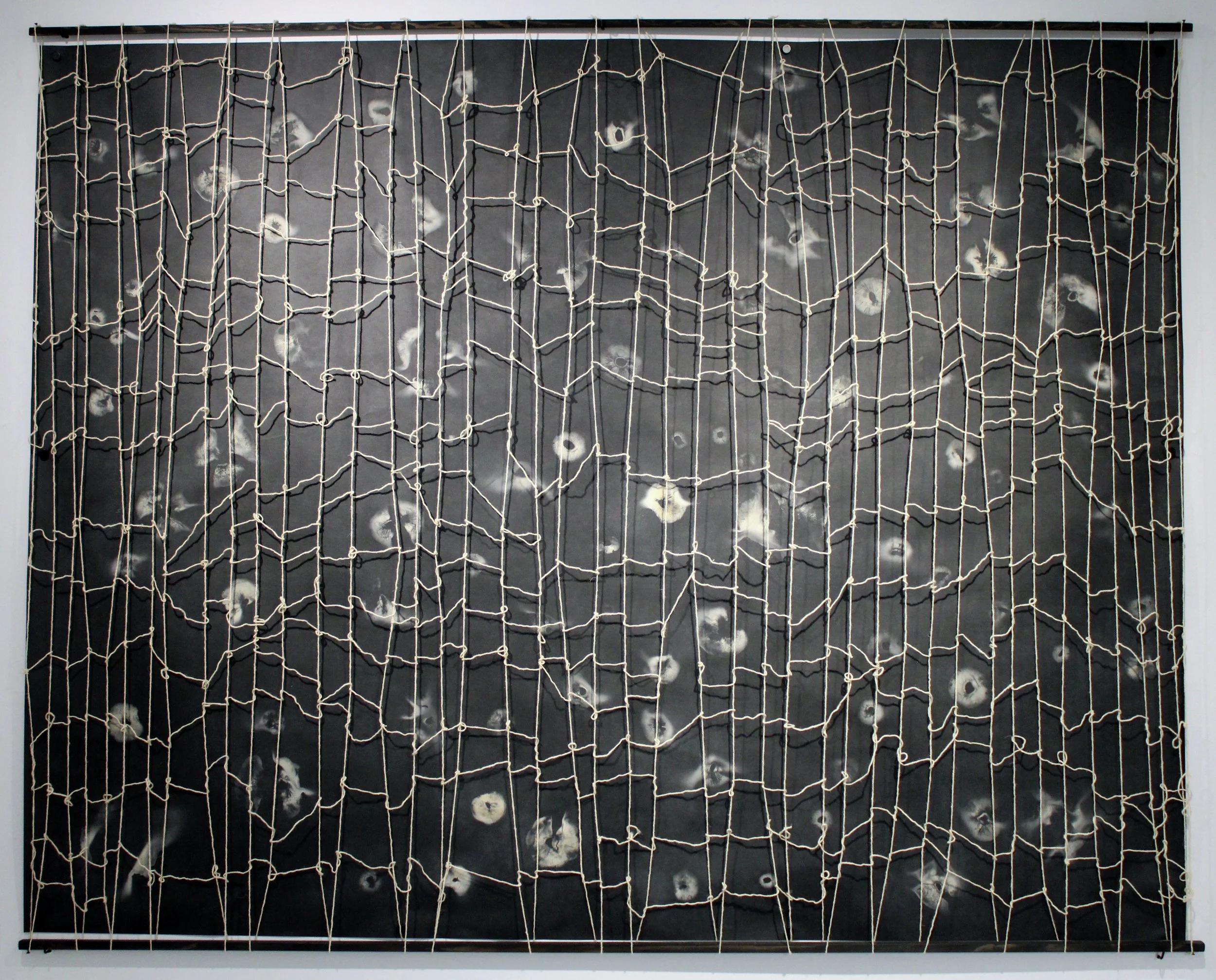 Wendy Wahl, Myco Network, 2014 / 2024, Spore print on industrial paper, wool, pine, NFS